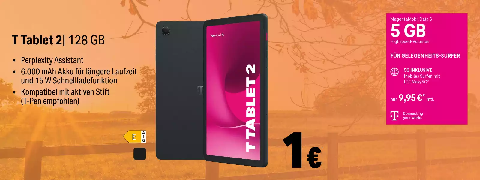 10) Monatlicher Grundpreis beträgt 9,95 € (mit Endgerät). Mindestvertragslaufzeit 24 Monate. Ab einem Datenvolumen von 5 GB pro Monat wird die Bandbreite im jeweiligen Monat auf 64 KBit/s (Download) und 16 KBit/s (Upload) beschränkt. Mit SpeedOn haben Sie die Möglichkeit, die Bandbreitenbeschränkung aufzuheben. Maximal verfügbare LTE-Geschwindigkeit von bis zu 300 MBit/s im Download und 50 MBit/s im Upload ist u. a. abhängig vom Endgerätetyp und Netzausbaugebiet und in immer mehr Ausbauregionen verfügbar. An einzelnen 5G-Standorten ist mit einem geeigneten Endgerät auch eine höhere Übertragungsgeschwindigkeit möglich. Die HotSpot Flatrate gilt für die Nutzung an inländischen HotSpots der Telekom Deutschland GmbH. Zudem beinhaltet der Tarif Roaming in der EU sowie in der Schweiz und in Großbritannien mit der Option Standard Roaming. In der EU ist Roaming für vorübergehende Reisen mit angemessener Nutzung enthalten. In der Schweiz und in Großbritannien darf die Nutzung eine angemessene Nutzung (monatliches Datenvolumen in Höhe des jeweiligen Inlandsvolumens vor Bandbreitenbeschränkung) nicht überschreiten. Der Tarif kann nicht für BlackBerry® genutzt werden. Nicht in Verbindung mit MultiSIM buchbar.